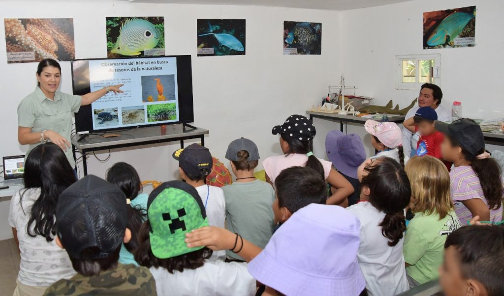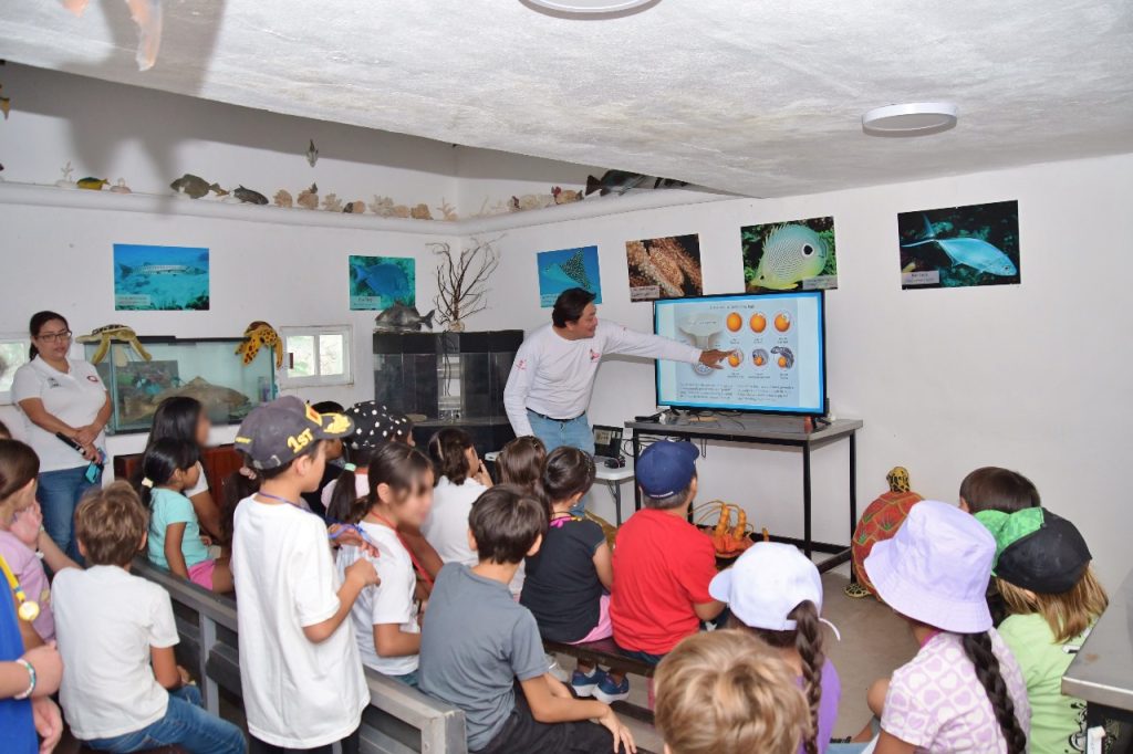 Durante la visita, conocieron el laboratorio de corales y recibieron una plática sobre el programa de protección de tortugas marinas, así como otras acciones de conservación y educación ambiental que realiza la FPMC en la isla.