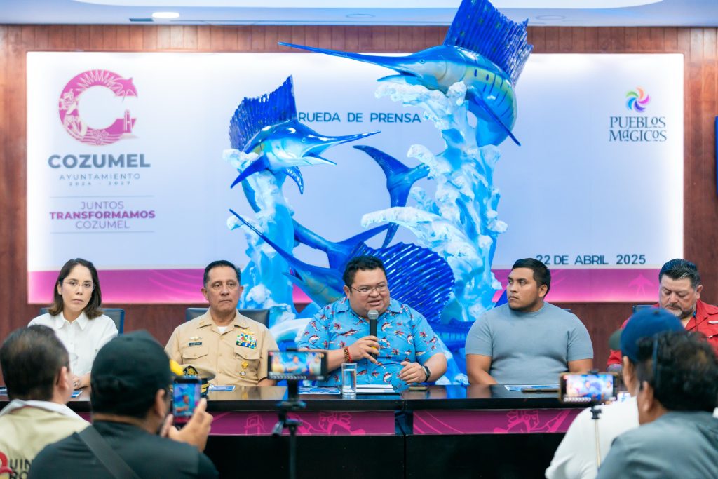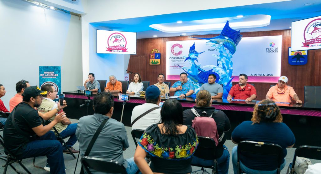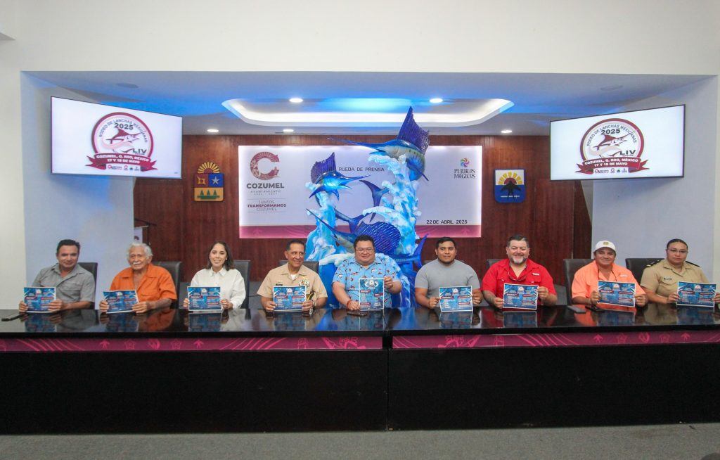 Cozumel, a 22 de abril de 2025.- En rueda de prensa encabezada por el presidente municipal, José Luis Chacón Méndez, fue presentada la edición número 54 del tradicional “Rodeo de Lanchas Mexicanas Cozumel 2025”, que se llevará a cabo del 16 al 18 de mayo, un evento que promete consolidarse como uno de los más relevantes del sureste mexicano en materia de pesca deportiva con la finalidad de captar más turismo.