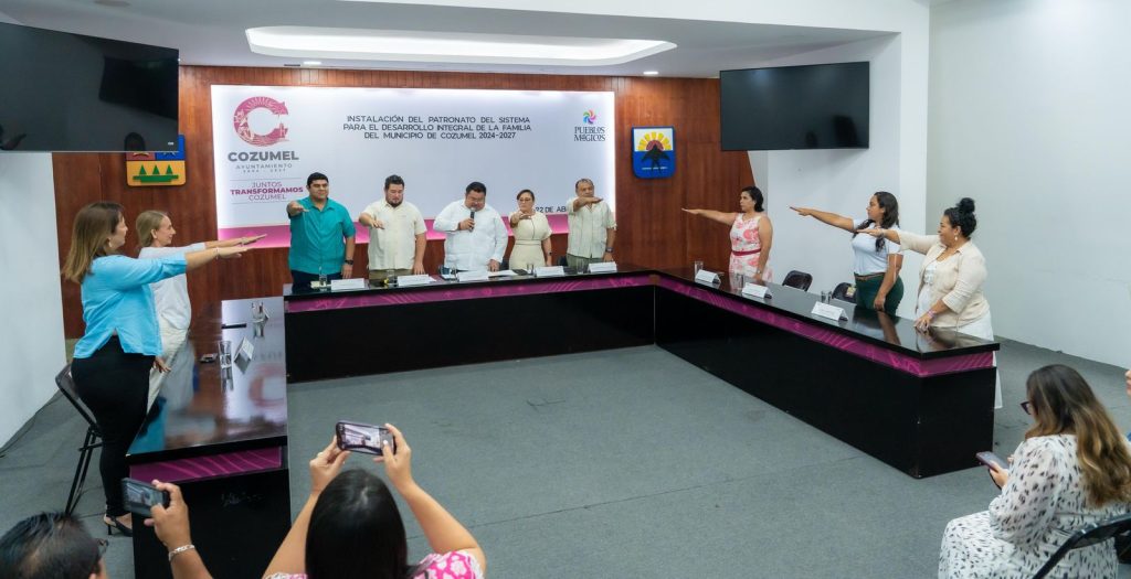 Cozumel a 22 de abril de 2025.- El presidente municipal, José Luis Chacón Méndez, tomó protesta e instaló el Patronato del Sistema para el Desarrollo Integral de la Familia (DIF), el cual será presidido por Diana Beatriz Sosa Blanco, presidenta honoraria del Sistema DIF.
