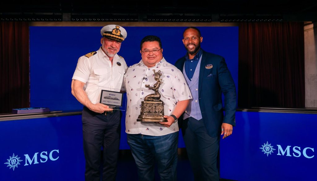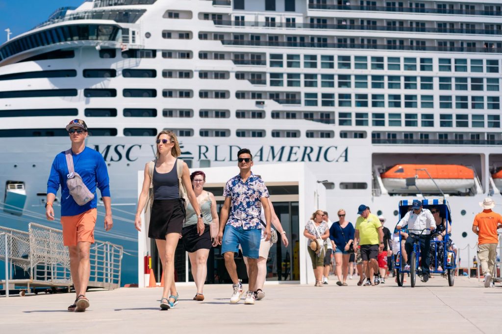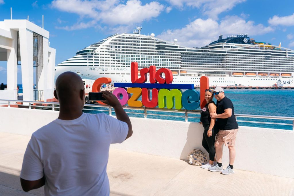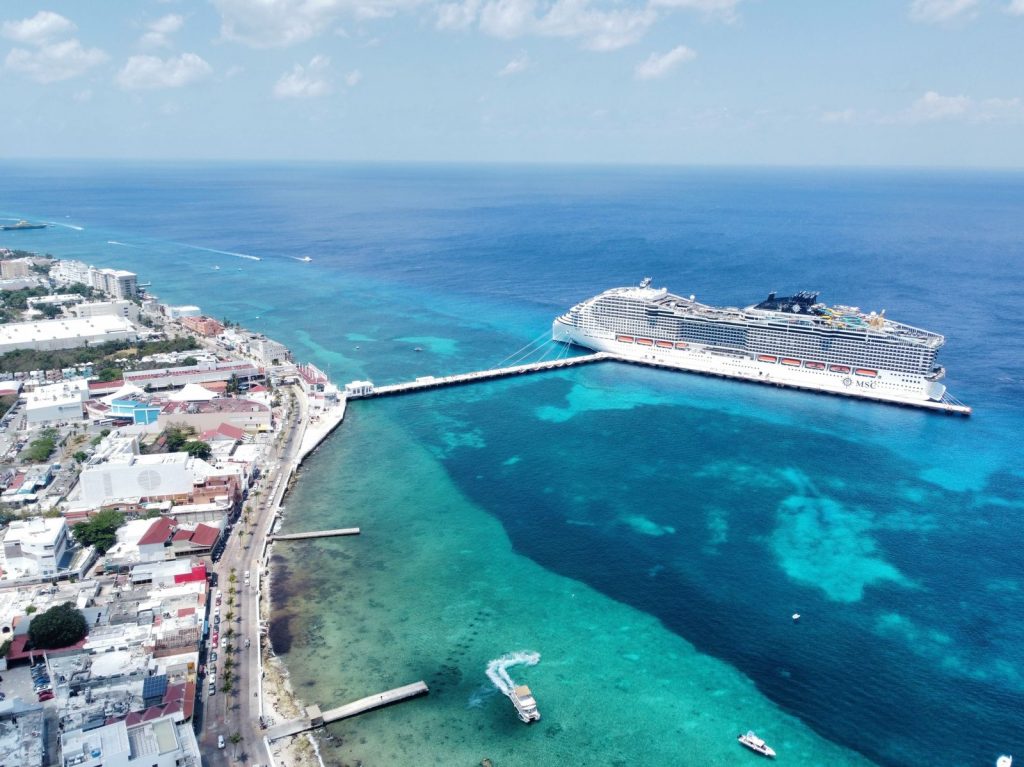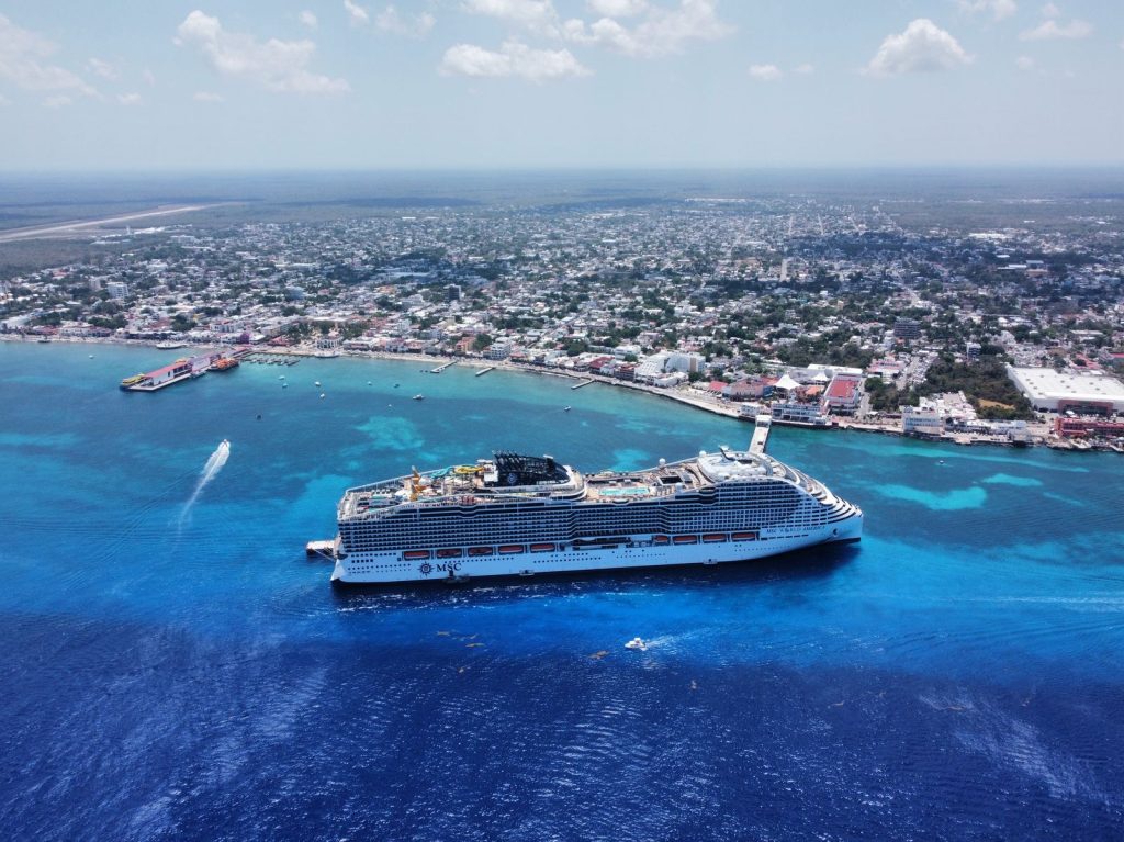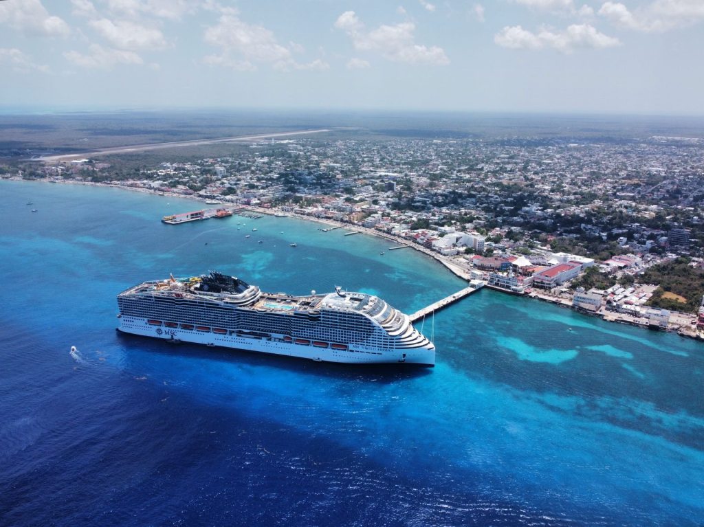Cozumel, a 23 de abril de 2025.- El presidente municipal José Luis Chacón Méndez recibió éste miércoles al crucero MSC World America, navío de reciente construcción y operado por MSC Crociere S.A., línea de cruceros perteneciente a Mediterranean Shipping Company (MSC).