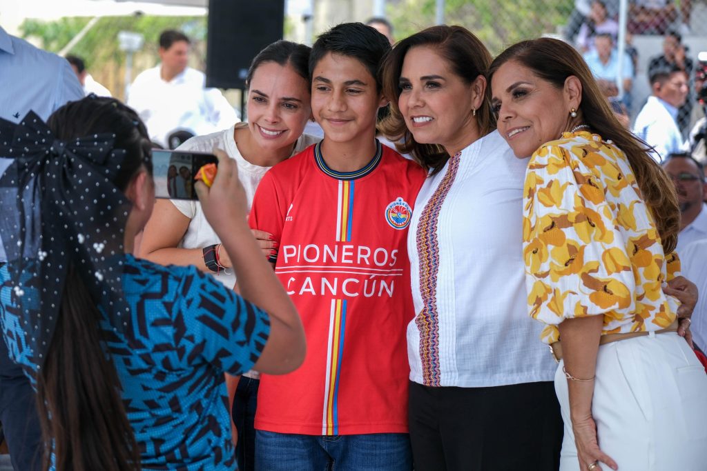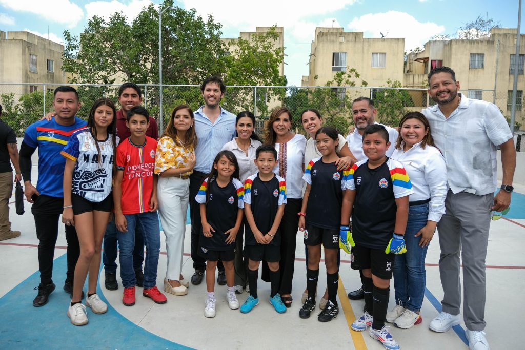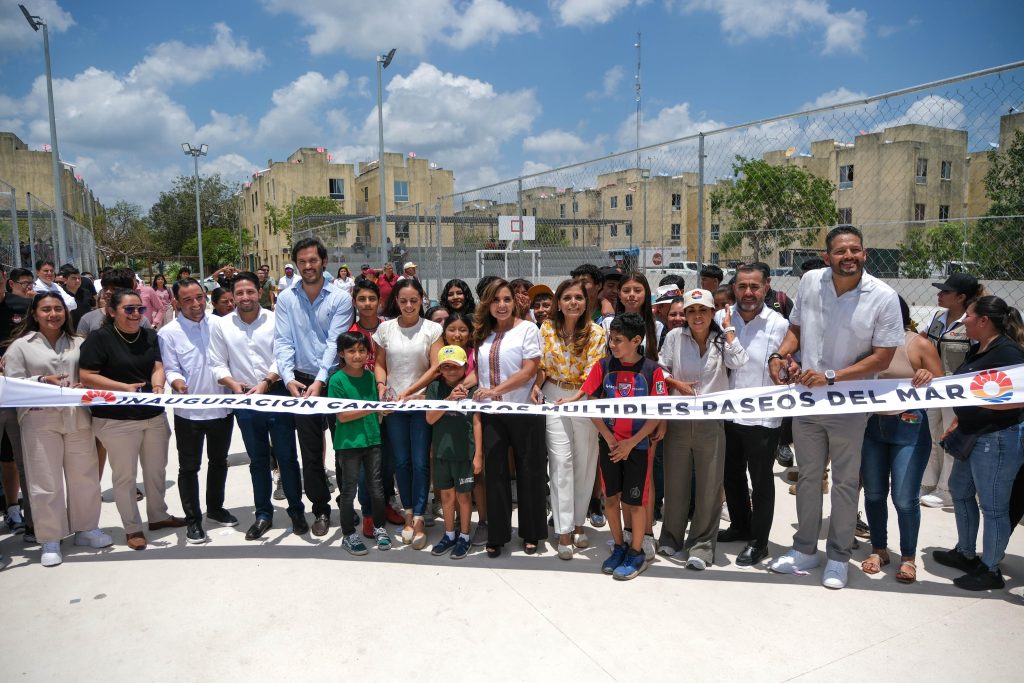 Cancún, 23 de abril del 2025.- Al inaugurar las canchas de usos múltiples del fraccionamiento Paseos del Mar, en la supermanzana 251 de Cancún, la gobernadora Mara Lezama Espinosa expresó su satisfacción y afirmó que cada vez que se abre un espacio deportivo se cierra la puerta a la inseguridad y a la violencia. “Cuando inauguramos una cancha hacemos comunidad, ganamos cohesión, ganamos paz”, dijo.