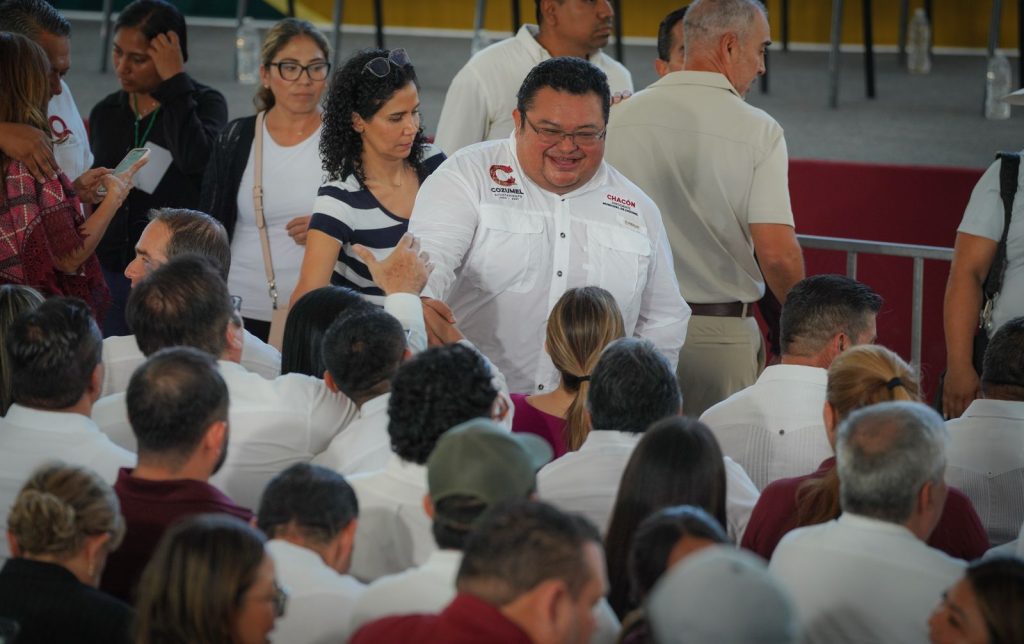 Cozumel, a 25 de abril de 2025.- El presidente municipal, José Luis Chacón Méndez acompañó éste viernes a la presidenta, Claudia Sheinbaum Pardo y a la gobernadora Mara Lezama Espinosa, en el arranque del programa de “Vivienda para el Bienestar” en Quintana Roo.