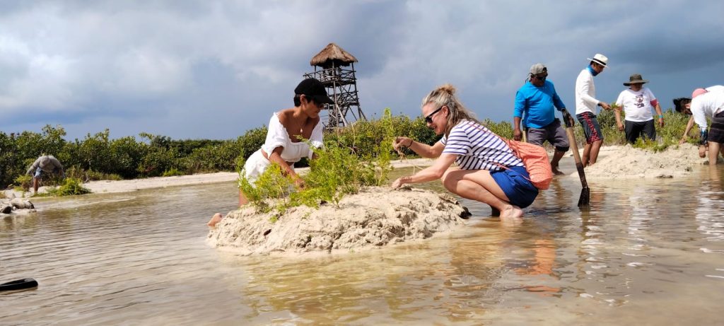 Posteriormente, las y los participantes se sumaron a labores del Programa de Restauración del Ecosistema de Manglar en la parcela de reforestación de la zona lagunar de Xtacún, reafirmando su compromiso con el medio ambiente a través de acciones tangibles que contribuyen a la regeneración de estos ecosistemas vitales.
