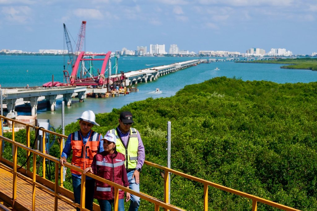 La construcción del puente sobre la laguna Nichupté, que cambiará la fisonomía de Cancún fue gestionada por la gobernadora Mara Lezama ante el entonces presidente Andrés Manuel López Obrador y tiene continuidad con la primera mujer Presidenta de México, Claudia Sheinbaum.