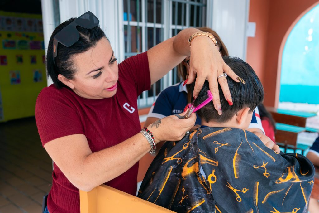 La encomienda del presidente municipal con éstas acciones, es la de reconocer los derechos de la población infantil y brindar servicios por el bienestar de la sociedad más vulnerable, por ello, la mañana de éste martes, a través de la subdirección de Desarrollo Social y del Centro de Desarrollo Comunitario (CDC) Froylán López, se realizaron 100 cortes de cabello a niñas y niños de educación especial”, afirmó Reina Angélica Lorenzo Aguilar, subdirectora de Desarrollo Social.