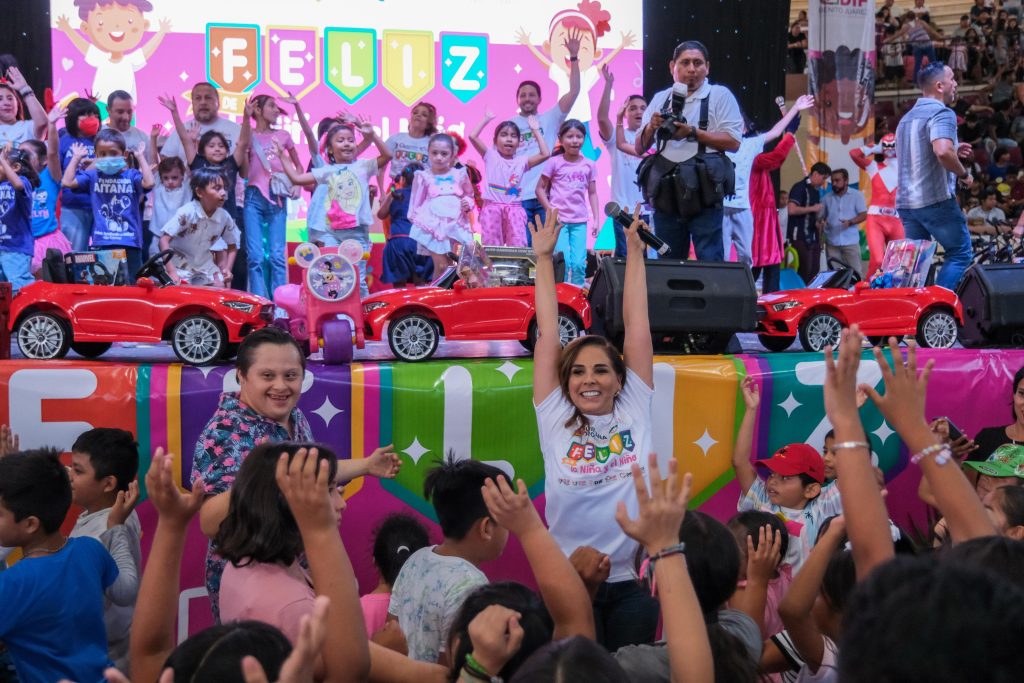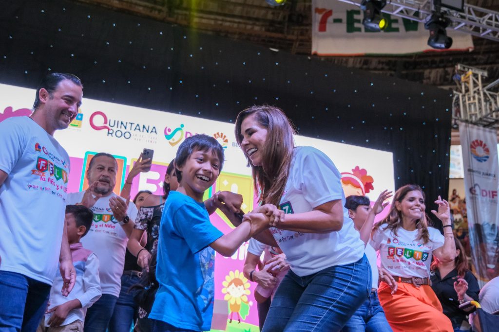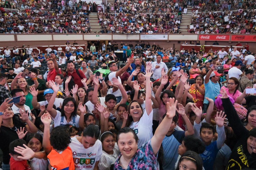 Cancún, 01 de mayo del 2025.- La gobernadora Mara Lezama Espinosa, junto a la presidenta honoraria del Sistema DIF Quintana Roo, Verónica Lezama Espinosa, y la presidenta municipal, Ana Paty Peralta, celebraron a la niñez acompañados de sus familias el “Día de la Niña y el Niño”, en la Plaza de Toros de esta ciudad.
