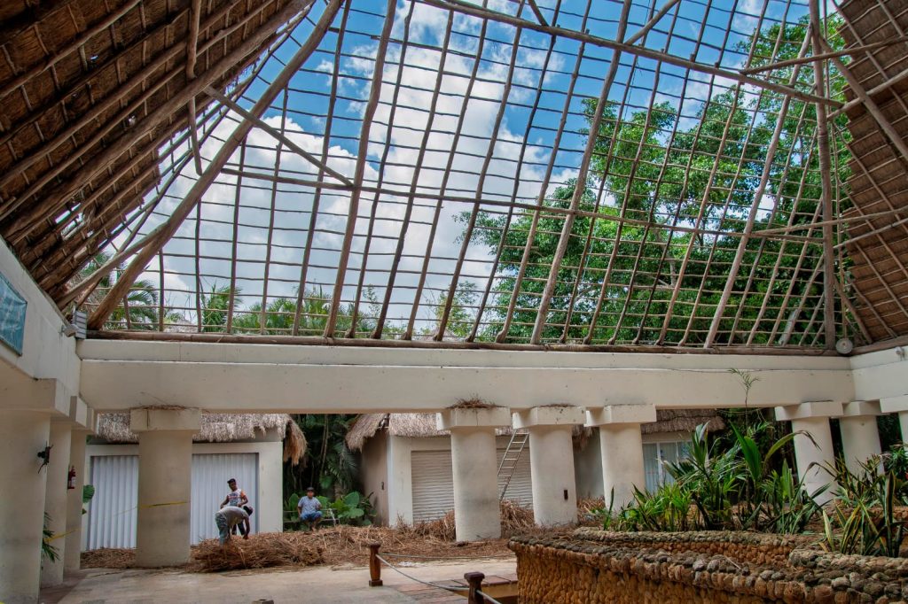 Cozumel, 2 de mayo del 2025.- Este jueves iniciaron las labores de rehabilitación de la palapa principal del Parque Natural Chankanaab, una estructura emblemática que da la bienvenida a miles de visitantes cada año. Este proyecto busca mejorar la experiencia de quienes disfrutan de este importante atractivo turístico.