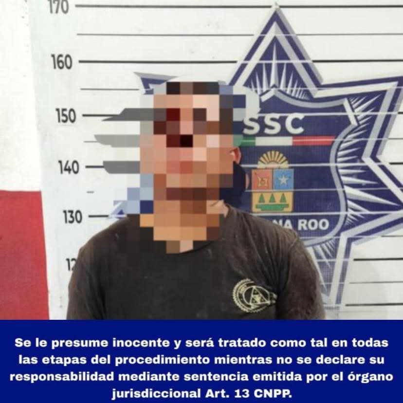Othón P Blanco.- Derivado de un operativo efectuado por elementos de la Secretaría de Seguridad Ciudadana de Quintana Roo, se informa sobre la detención de Luis “N”, presunto agresor de una mujer que lamentablemente perdió la vida en Calderitas, municipio de Othón P. Blanco.