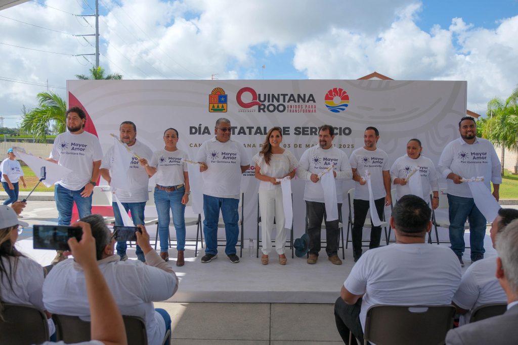 Cancún, 4 de mayo del 2025.- Como parte de las acciones para la reconstrucción del tejido social, el fortalecimiento de la convivencia comunitaria y la promoción activa de la paz desde los territorios, la gobernadora Mara Lezama Espinosa encabezó el Primer Día Estatal de Servicio.