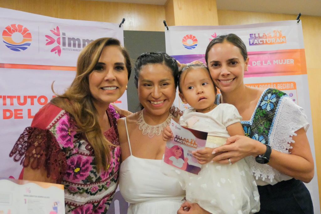 Cancún a 18 de marzo del 2025.- Mujeres emprendedoras tendrán nuevo impulso, más herramientas que abran puertas y sus negocios crezcan y prosperen; la gobernadora Mara Lezama Espinosa y la presidenta Ana Paty Peralta de la Peña encabezaron la entrega de las primeras 150 tarjetas de beneficio del programa “Ellas Facturan”, iniciativa que impulsa el Instituto Municipal de la Mujer, a cargo de Miroslava Andrea Reguera Martínez.