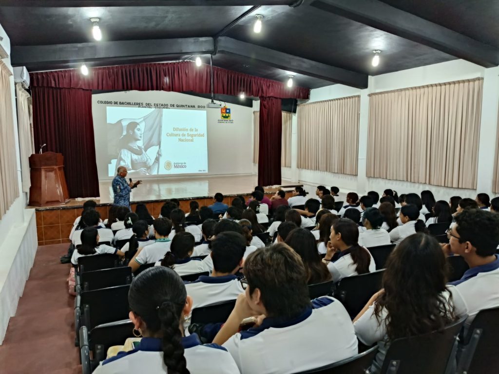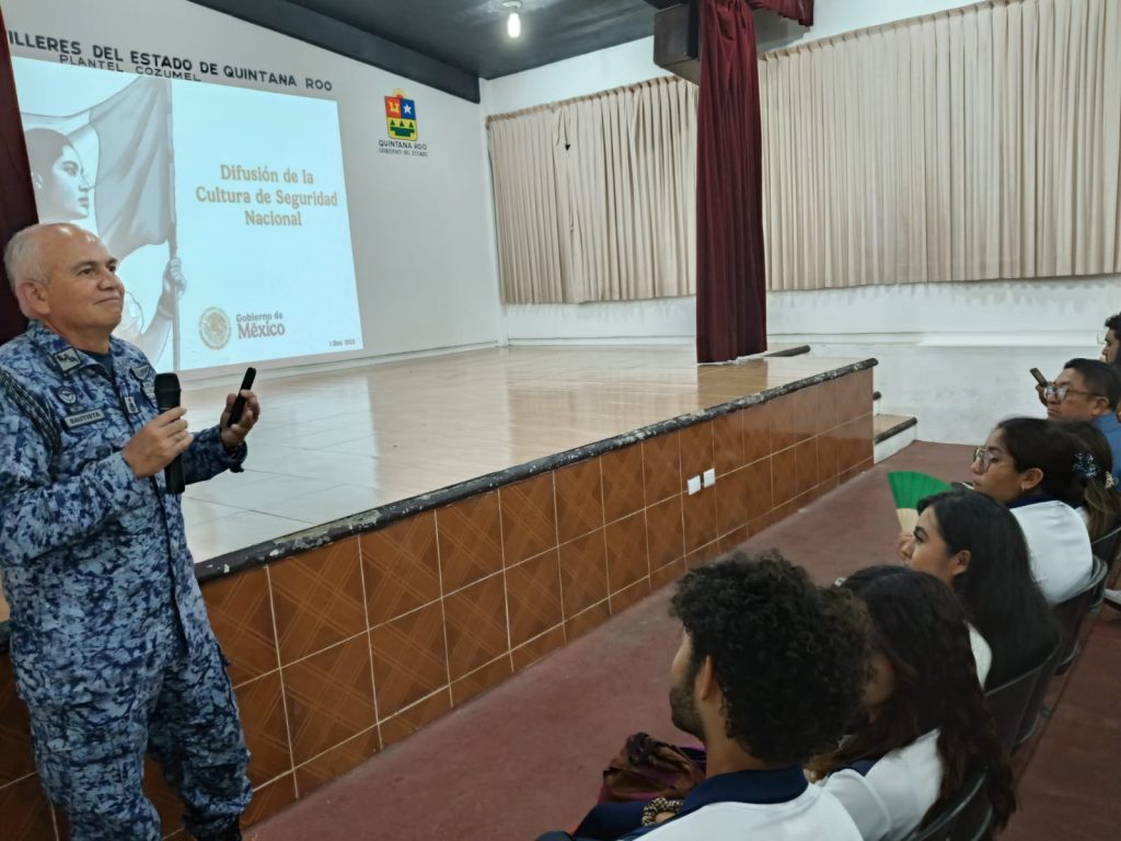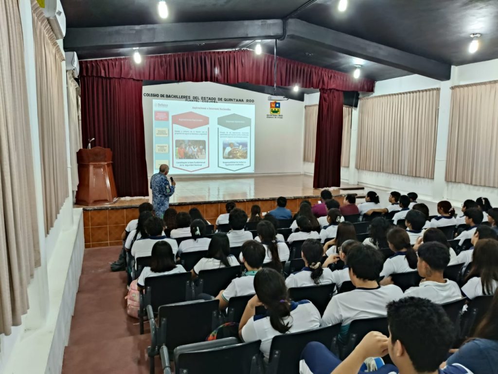 Cozumel, 9 de mayo del 2025. — En coordinación con la Secretaría de la Defensa Nacional (SEDENA), el Gobierno Municipal que encabeza, José Luis Chacón, llevó a cabo la charla “Difusión de la Cultura de Seguridad Nacional”, con el objetivo de fortalecer el conocimiento y la conciencia cívica entre la juventud cozumeleña.