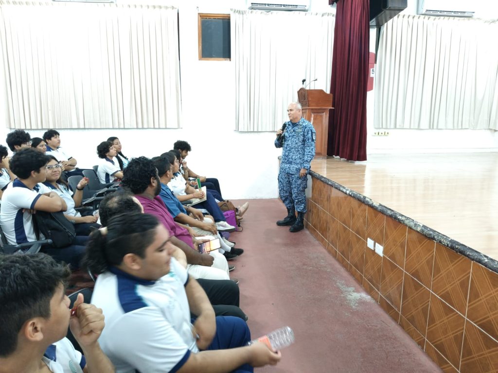 La ponencia organizada por la Subdirección de Educación, fue impartida en el Colegio Bachilleres por el general de grupo piloto aviador de Estado mayor, Jesús Bautista Alatorre, Comandante de la Base Aérea Militar No. 4 (B.A.M. #4), quien ofreció dos sesiones informativas en el auditorio de dicha institución.