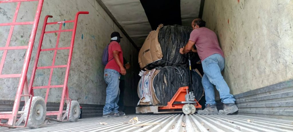 Para este envío, la cuadrilla de CAMAR trabajó desde temprana hora para cargar el tráiler de 53 pies cúbicos que salió por la tarde con rumbo a la planta Geocycle, localizada en Macuspana, la cual es una empresa global que emplea un tratamiento de geoprocesamiento para la elaboración del cemento Apasco.