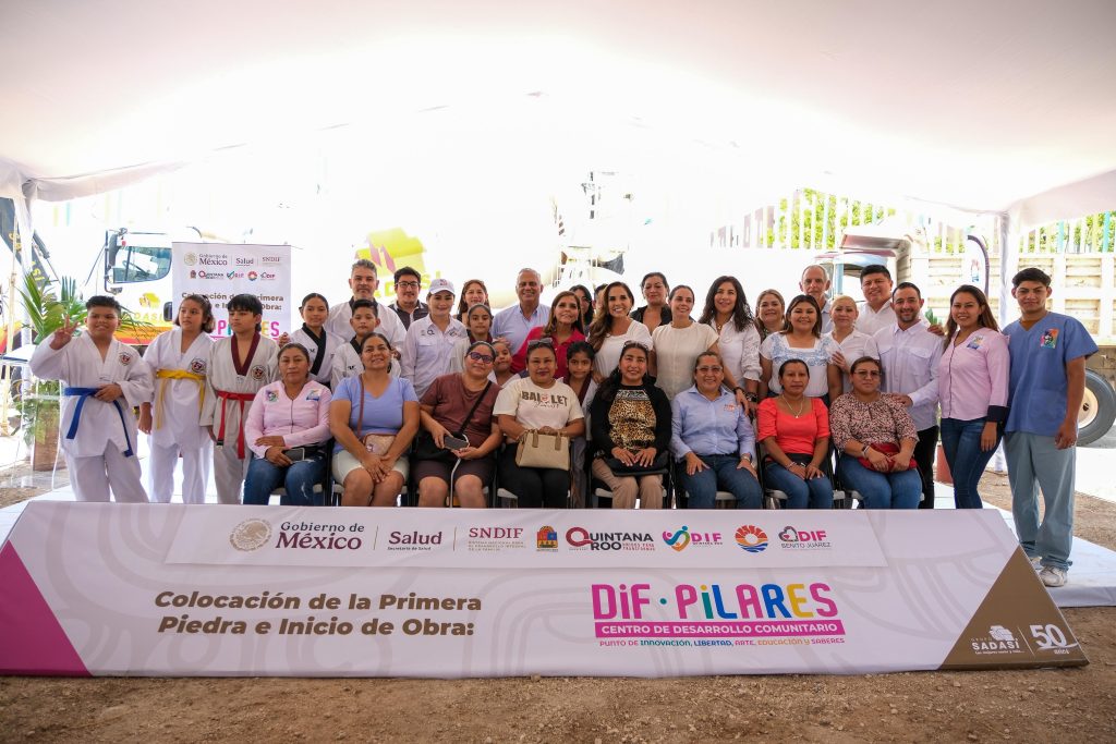 Cancún, 13 de mayo de 2025. – Con el objetivo de fortalecer el desarrollo integral de la población en zonas prioritarias, la gobernadora Mara Lezama Espinosa colocó la primera piedra para la construcción del nuevo Centro de Desarrollo Comunitario DIF-PILARES, acompañada por la presidenta honoraria del Sistema DIF Quintana Roo, Verónica Lezama Espinosa y la presidenta municipal de Benito Juárez, Ana Paty Peralta.