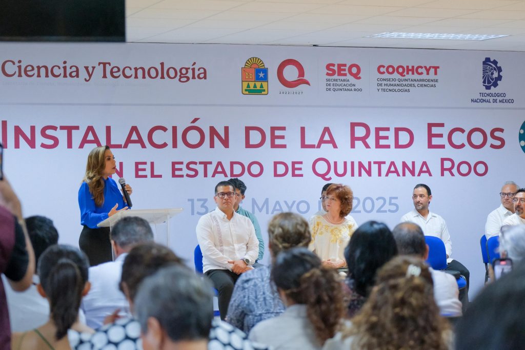 Cancún, 13 de mayo de 2025.- Al instalar la Red ECOS Quintana Roo, la gobernadora Mara Lezama Espinosa expresó que es un acto de congruencia con el país que queremos ser, y nuestra entidad se suma, con absoluta decisión, a la política nacional de hacer de México una potencia científica y tecnológica, de la mano de la Presidenta Claudia Sheinbaum Pardo.