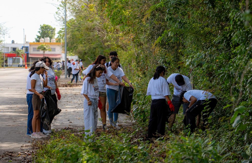 Cozumel, 14 de mayo de 2025.- Más de 50 jóvenes de la isla se sumaron a la “Jornada Nacional de Tequios” a través de una intensa labor en la que lograron despejar las inmediaciones de la Universidad autónoma de Quintana Roo (UAQROO) de residuos sólidos, sumándose también de este modo al esfuerzo que realiza el Gobierno Municipal que preside, José Luis Chacón, para ofrecer espacios más seguros y saludables para los jovenes.
