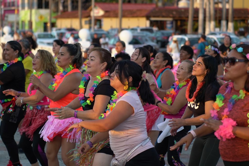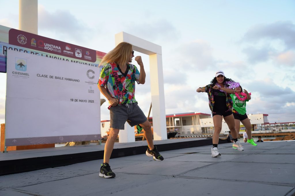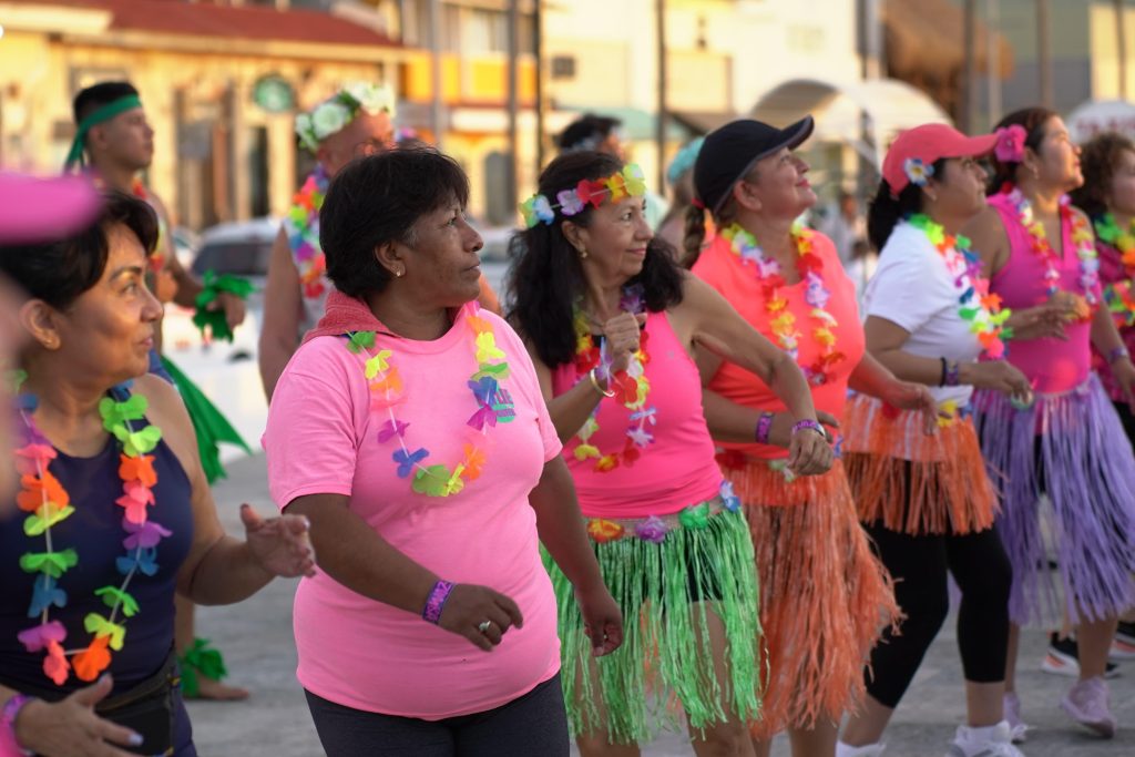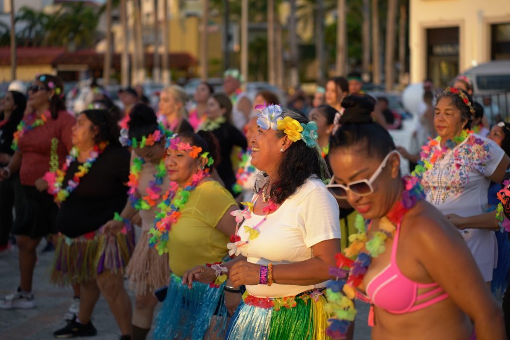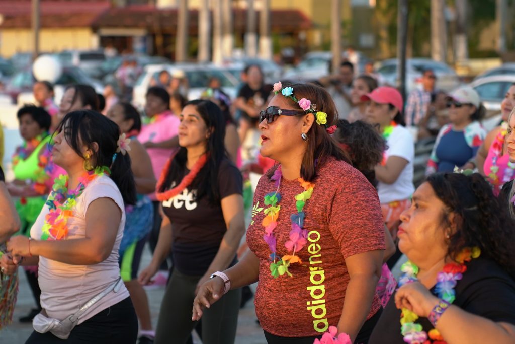 Cozumel, a 19 de mayo de 2025.- Como parte de las actividades del mes de mayo para consentir a las mamás, la tarde de este lunes se llenó de color con más de 50 mujeres que, ataviadas con atuendos hawaianos, disfrutaron de un hermoso atardecer durante una animada clase de zumba organizada por el Comité Municipal de la Mujer (COMUMU), llevada a cabo en la explanada de la bandera.
