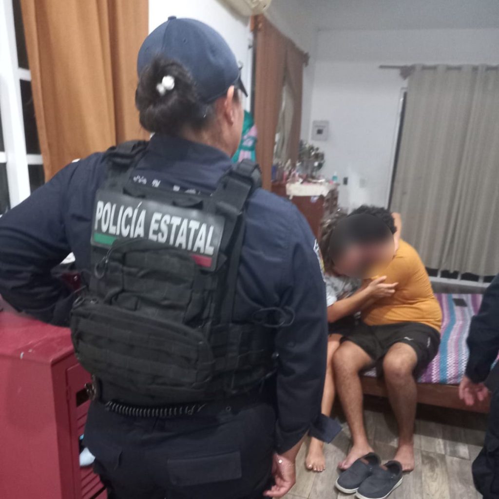 Se procedió a trasladar a la madre a las instalaciones de la Fiscalía General del Estado. Durante el trayecto, recibió una llamada de su hermana, quien le confirmó que el menor se encontraba sano y salvo en su domicilio. De inmediato, los elementos la llevaron hasta el lugar, donde encontraron al joven en crisis emocional. El menor explicó que le clonaron su teléfono celular y que, mediante llamadas falsas, personas desconocidas intentaron extorsionar a sus familiares y amigos, haciéndoles creer que él estaba secuestrado. Indicó que en todo momento permaneció dentro de las instalaciones del Palacio Municipal.