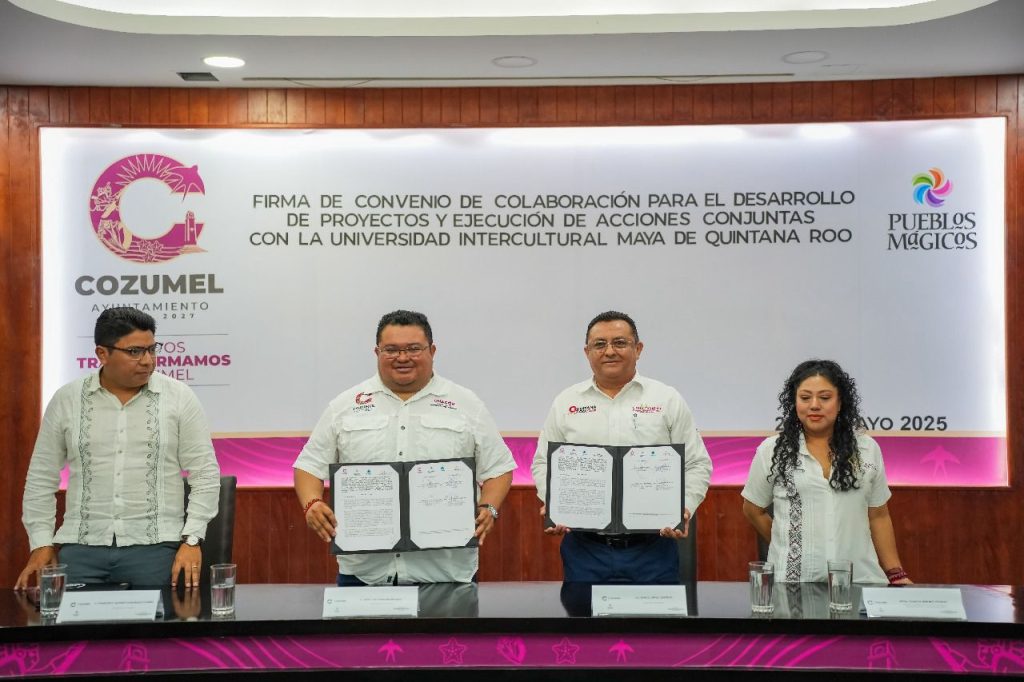 Cozumel, 27 de mayo de 2025.- Con el objetivo principal de fortalecer las capacidades y habilidades de las y los servidores públicos, impulsando su profesionalización para brindar un servicio más eficiente, ético y de calidad, el gobierno que encabeza José Luis Chacón Méndez, firmó un convenio con la Universidad Intercultural Maya de Quintana Roo.