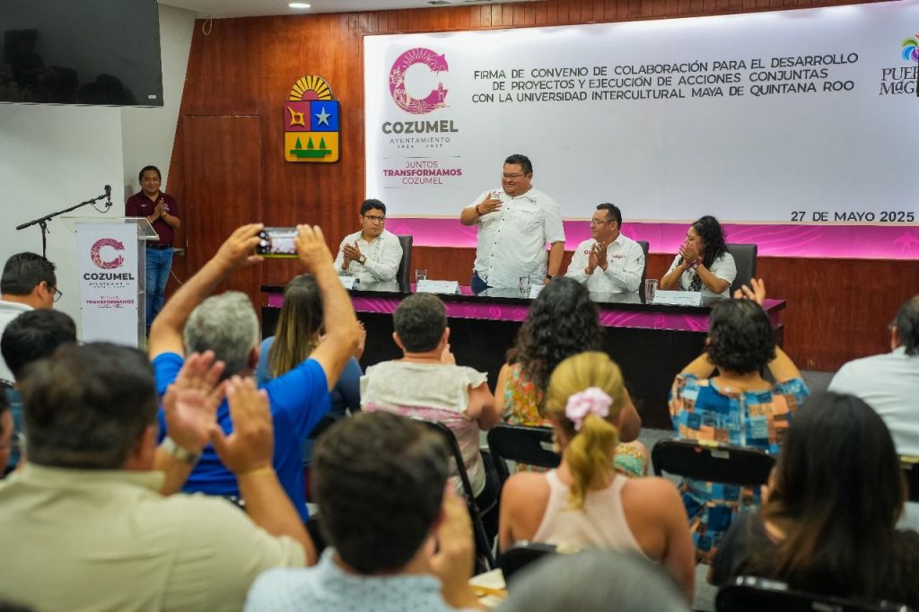 “Me llena de alegría y entusiasmo participar en este acto que simboliza el compromiso firme de este gobierno municipal, la profesionalización del servicio público y sobre todo con la ciudadanía cozumeleña. Hoy con la firma de este convenio de colaboración con la Universidad Intercultural Maya de nuestro querido estado, estamos estrechando lazos institucionales y también estamos dando un paso importante en la construcción de un Cozumel más humano, más preparado, y más consciente de su diversidad cultural”, explicó.
