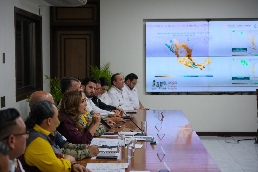 Chetumal.- Al iniciar la Temporada de Lluvias y Ciclones Tropicales 2025, la gobernadora Mara Lezama Espinosa instaló oficialmente el Comité Operativo Hidrometeorológico al encabezar la Primera Sesión Ordinaria del Consejo Estatal de Protección Civil, con la presencia de presidentas y presidentes municipales, DEFENSA, MARINA, así como autoridades federales y paraestatales.