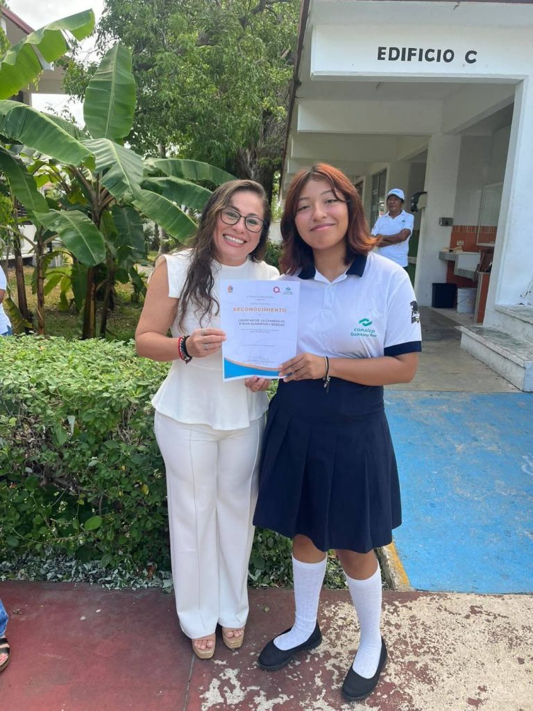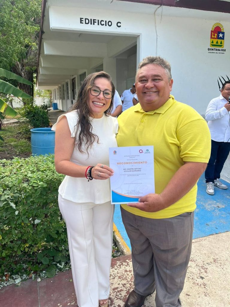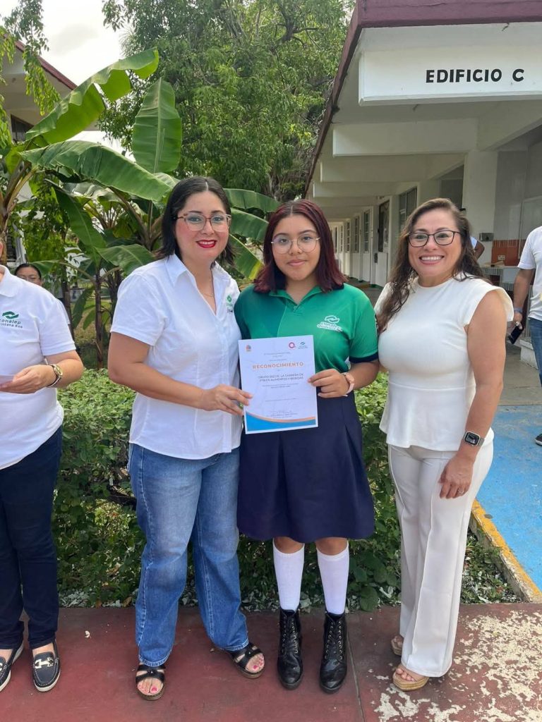 Cozumel, 04 de junio de 2025.- Se hicieron entrega de reconocimientos a los grupos 601, 602, 603 de Alimentos y bebidas y al 606 de Turismo quienes participaron en el proyecto «QUE LATA CON LAS LATAS» lidereado por el Ing. Martin Arturo Aguilar Quiñonez y la Profa. Geidy Rosely Canché Tec.