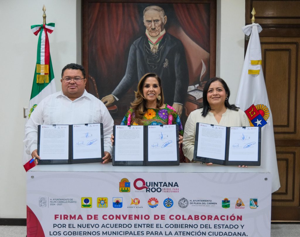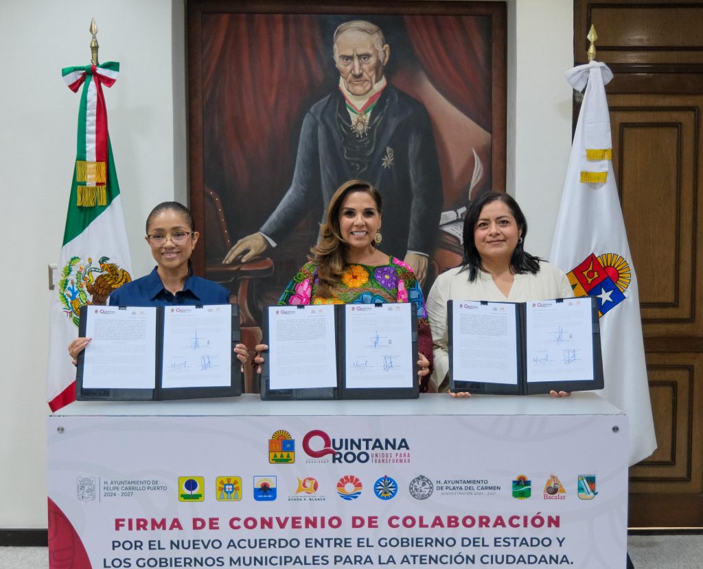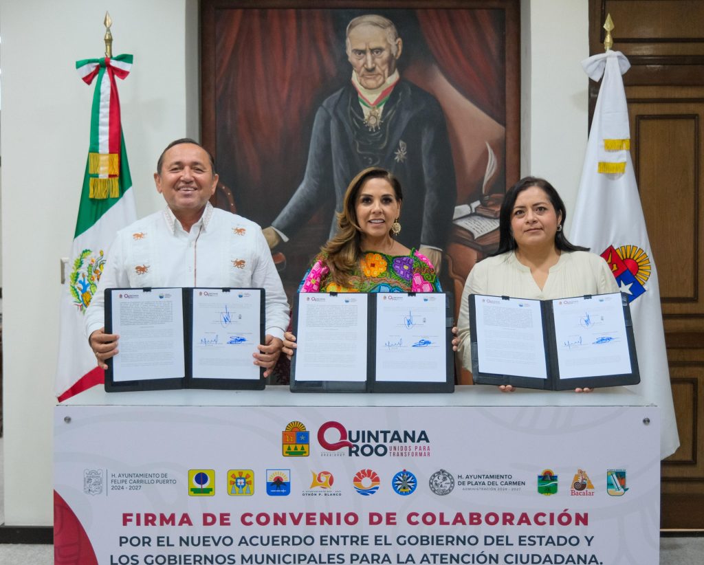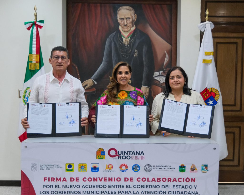 Chetumal, 08 de junio de 2025.- El Gobierno del Estado, a través del Despacho de la Coordinación General de Gestión Social, y los 11 municipios de Quintana Roo firmaron el Convenio de Colaboración por el Nuevo Acuerdo entre el Gobierno del Estado y los gobiernos municipales para la Atención Ciudadana, con el objetivo de fortalecer la coordinación interinstitucional y brindar respuestas más eficaces a las necesidades de la población.