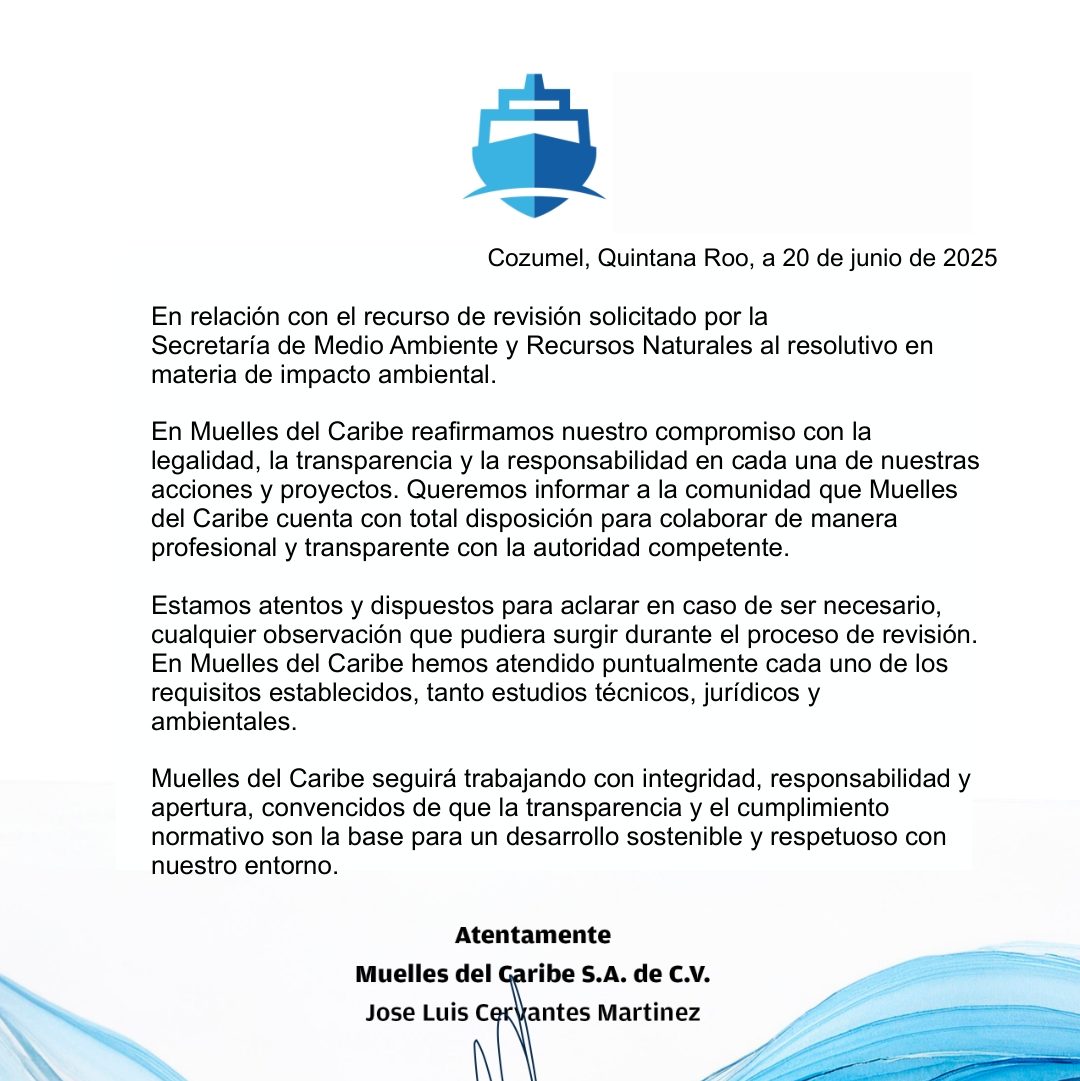 Muelles del Caribe seguirá trabajando con integridad, responsabilidad y apertura, convencidos de que la transparencia y el cumplimiento normativo son la base para un desarrollo sostenible y respetuoso con nuestro entorno.