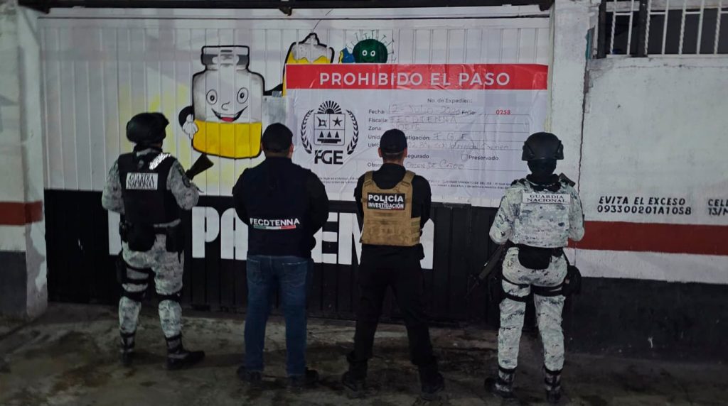 En el local fueron colocados los sellos de aseguramiento, indicando que ahora está bajo resguardo de la Fiscalía General del Estado.