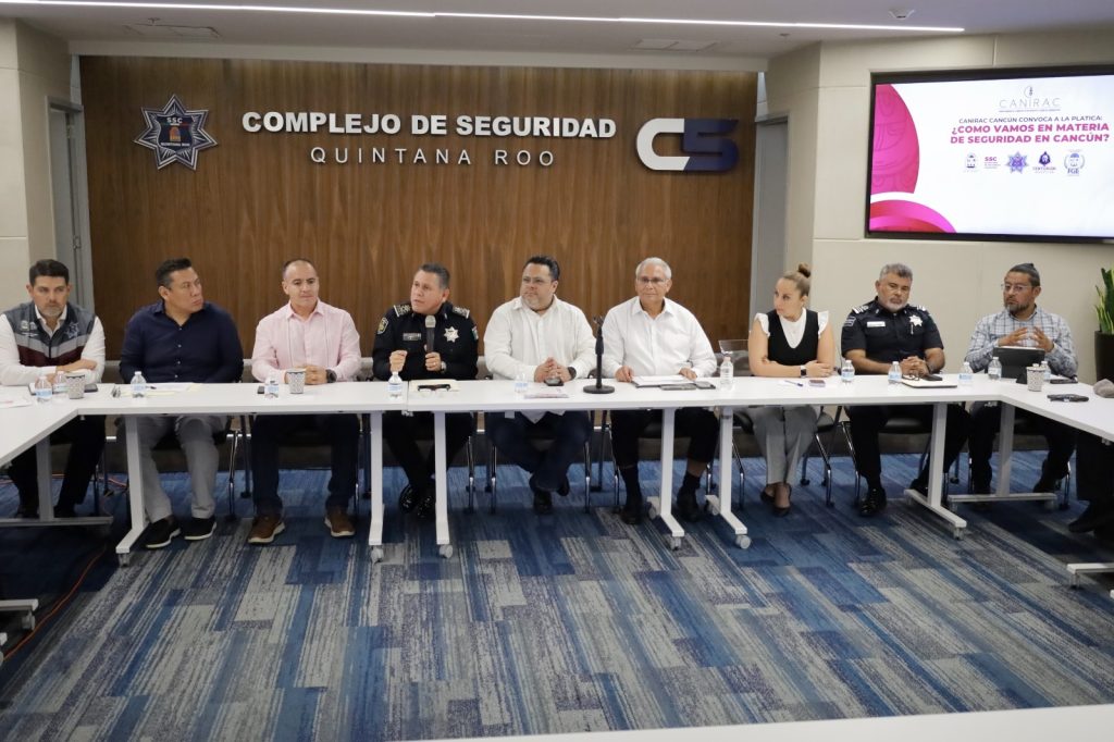 En la mesa de trabajo, estuvo presente el Contralmirante Julio César Gómez Torres, Secretario de Seguridad Ciudadana; Raciel López Salazar, titular de la Fiscalía General del Estado; Jaime Padilla Barrientos, titular de la Secretaría Municipal de Seguridad Ciudadana y Tránsito de Benito Juárez, entre otras autoridades; así como Julio Villareal Zapata, presidente de la CANIRAC en Cancún y en Quintana Roo y varios de sus integrantes; quienes escucharon las acciones y estrategias que se han implementado en cada una de las instituciones, así como los resultados obtenidos y la coordinación que existe entre los tres niveles de gobierno para la construcción de paz.