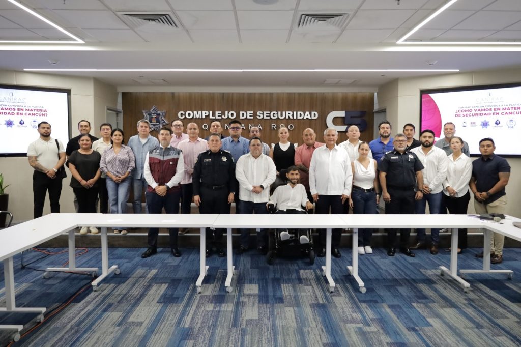 Cancún, 28 de agosto del 2025.- En las instalaciones del Complejo de Seguridad C5, se realizó un encuentro denominado: ¿Cómo vamos en materia de seguridad en Cancún?; entre las autoridades estatales y municipales, con el sector empresarial de la de la Cámara Nacional de la Industria de Restaurantes y Alimentos Condimentados de Quintana Roo (CANIRAC), para presentar los avances en seguridad y el trabajo interinstitucional que se ha venido realizando para el combate a la delincuencia y la prevención del delito.