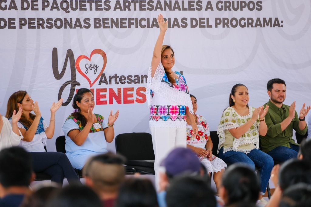 Cada grupo social está conformado por 50 personas, lo que hace un total de mil 750 maestras y maestros artesanos beneficiados, a quienes Mara Lezama les dijo que esta entrega representa una devolución de lo mucho que hacen por Quintana Roo, pero también el fortalecimiento de nuestra identidad y el reconocimiento a nuestra cultura.