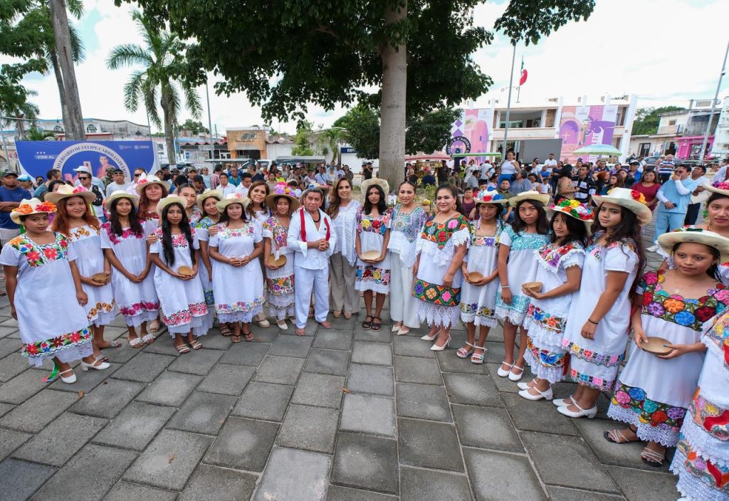 Durante el evento, realizado en la plaza central de Felipe Carrillo Puerto, la gobernadora Mara Lezama aseveró que la Cuarta Transformación llegó para cambiarle la vida a esta tierra, con dos estaciones del Tren Maya, el aeropuerto internacional, la puerta al mar, el nuevo hospital en construcción, que generan empleos y prosperidad a las personas, pues esta nueva forma de gobernar pone a las personas en el centro de las decisiones.