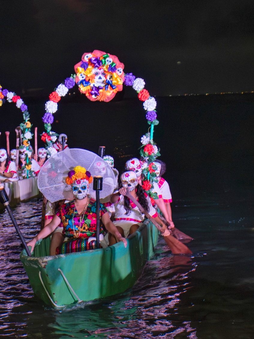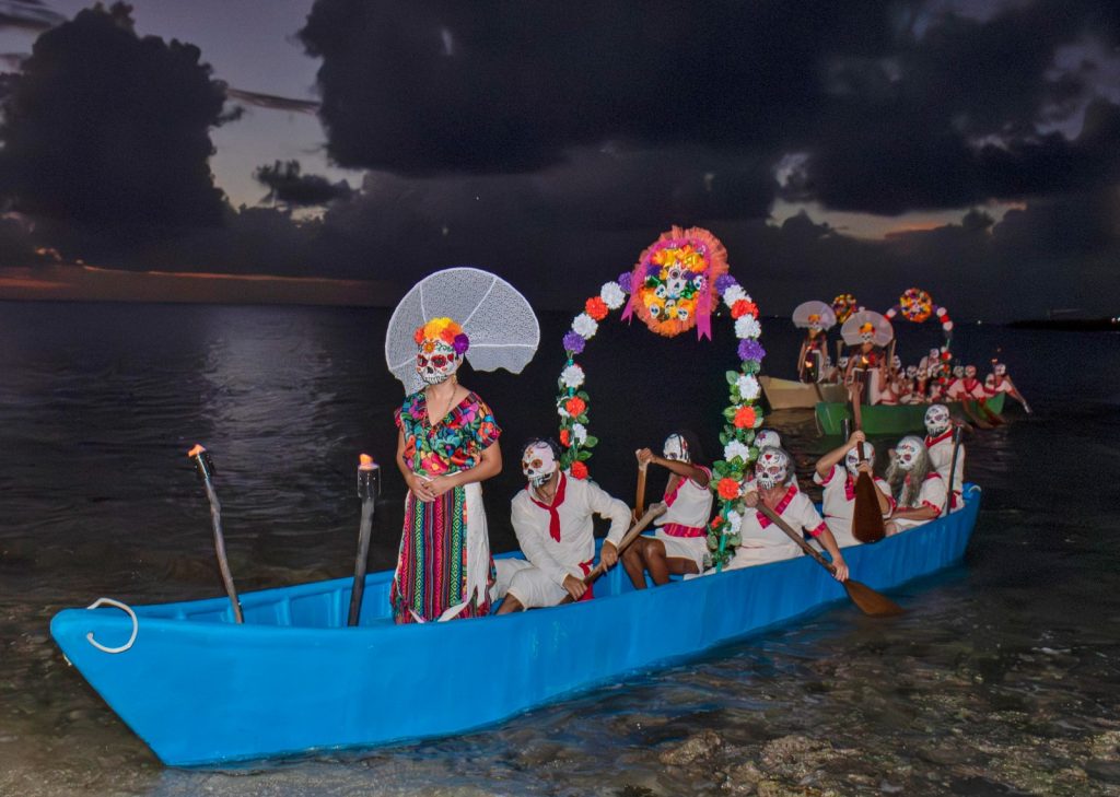 La jornada inició con la emotiva representación de la “Llegada de las Almas”, a cargo de la agrupación Canoa Maya Cozumel, marcando el inicio simbólico del recorrido espiritual del festival.
