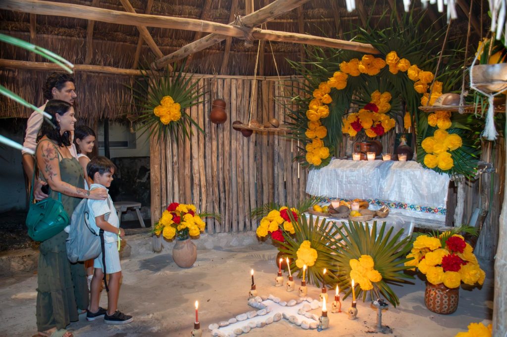Las y los asistentes recorrieron además el altar dedicado al artista Francisco Benjamín López Toledo, el altar del Hanal Pixán (Comida de las Ánimas) instalado en la casita maya, y disfrutaron de cada rincón del recinto adornado con arte, flores, alebrijes y tradición.