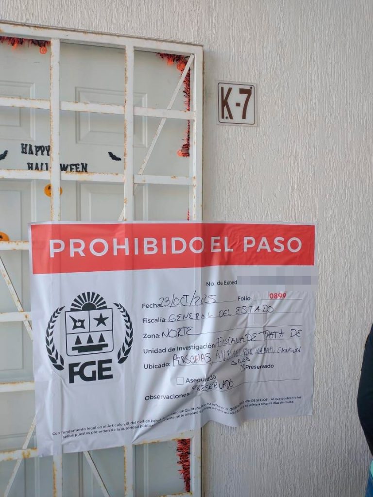 Benito Juárez, 27 de octubre de 2025.- Catorce mujeres de nacionalidad colombiana, presuntas víctimas de hechos constitutivos del delito de trata de personas en su modalidad de prostitución ajena, fueron rescatadas por personal de la Fiscalía General del Estado y la Guardia Nacional, durante el cumplimiento de órdenes de cateo giradas por un Juez, en el inmueble ubicado el cruce de las avenidas La Luna y Del Sol, de la Supermanzana 44, de este municipio y otro en Playa del Carmen.