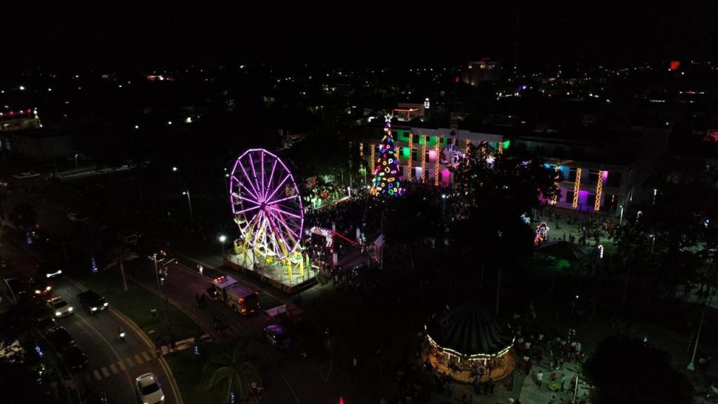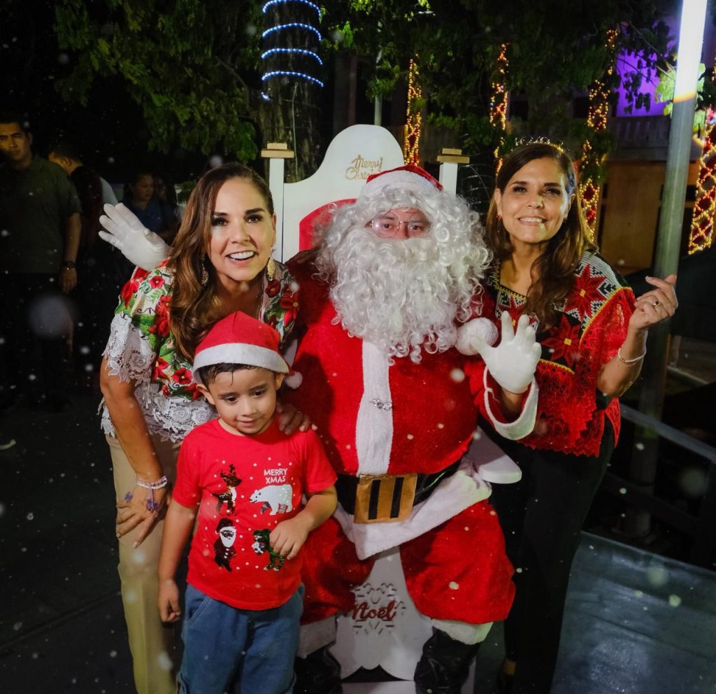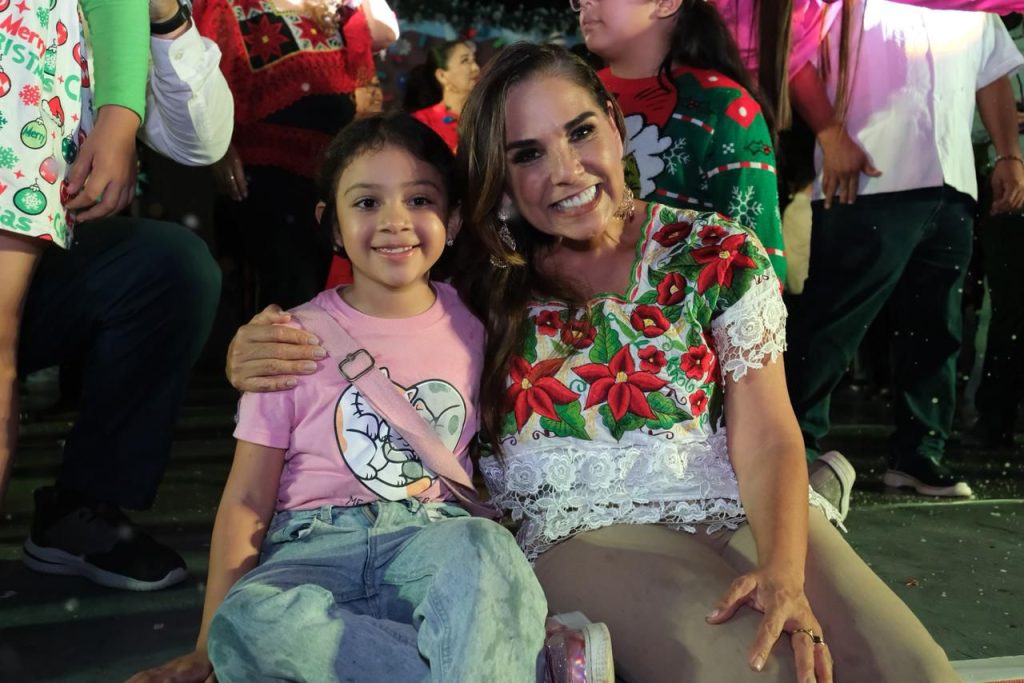 Chetumal, 01 de diciembre de 2025.- En la plaza cívica de la Bandera, en Chetumal, la capital del estado, y con un ambiente lleno de alegría, unión familiar y espíritu navideño, la gobernadora Mara Lezama Espinosa y la presidenta honoraria del DIF Quintana Roo, Verónica Lezama Espinosa, acompañadas de cientos de familias chetumaleñas, encendieron el árbol de Navidad e inauguraron las Villas Navideñas y la pista ecológica de patinaje, con lo que dio inicio a la temporada decembrina.