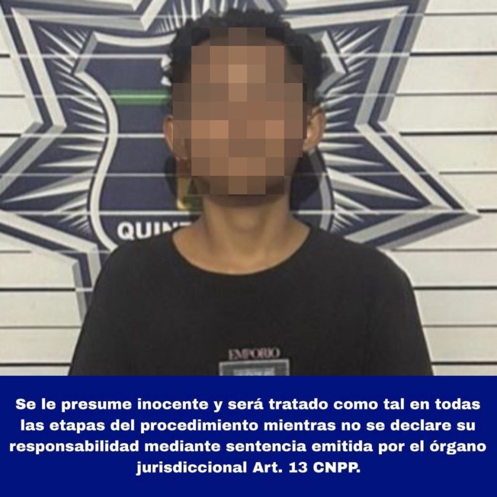 Durante la revisión de la motocicleta, el menor adoptó una actitud agresiva y evasiva. Al corroborar los datos de la motocicleta marca MB, tipo Beretta, color negro, con placas de circulación del estado de Quintana Roo, con el Complejo de Seguridad C5 arrojó un reporte de robo vigente de fecha 04 de enero de 2025; procediendo con su aseguramiento y el del conductor el cual fue puesto a disposición de la Fiscalía Especializada en Investigación de Delitos Cometidos por Adolescentes.