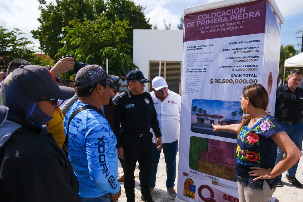 Holbox, 13 de enero de 2026.- La gobernadora Mara Lezama Espinosa colocó la primera piedra para iniciar la construcción de la Base de la Policía y Bomberos de Holbox, una infraestructura estratégica que permitirá fortalecer la capacidad operativa de los cuerpos de seguridad y de atención a emergencias en esta isla.