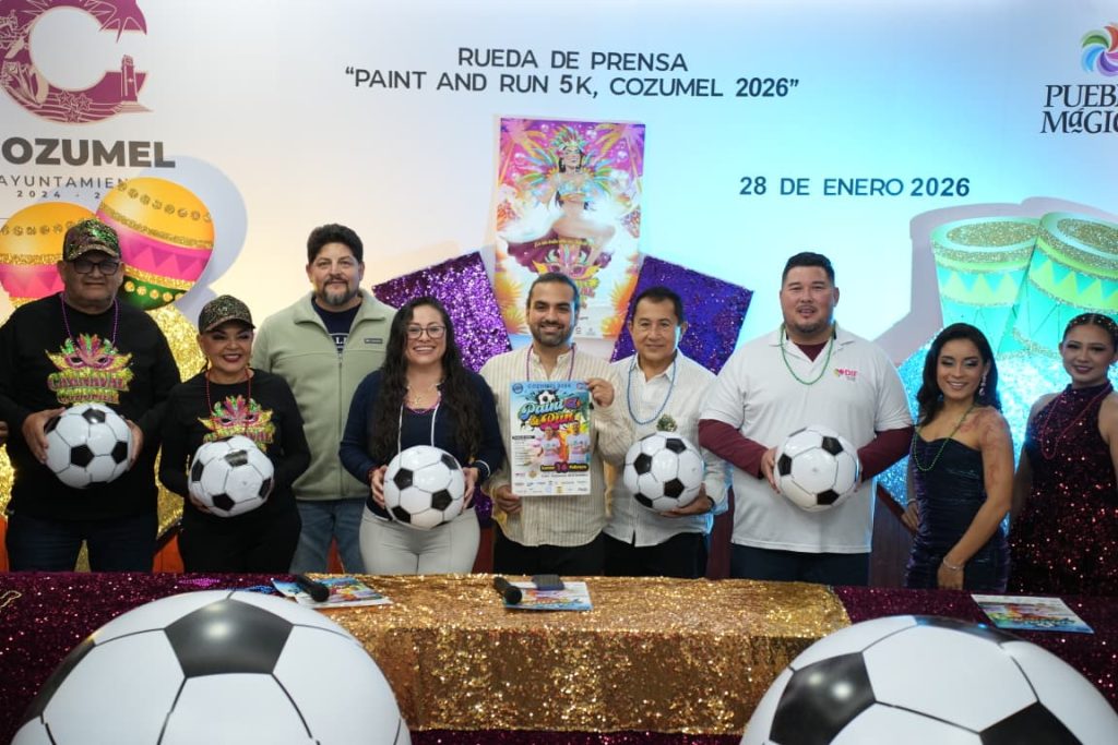 Cozumel, a 28 de enero de 2026.- El próximo 16 de febrero se realizará la tradicional y colorida carrera Paint & Run 5K Cozumel 2026, en su edición mundialista, como parte de las actividades del Carnaval de Cozumel. Este evento, de carácter familiar e inclusivo, tendrá como punto de salida y meta la explanada de la Bandera y destinará todo lo recaudado a una institución social que requiere apoyo, consolidándose como una convivencia que une deporte, alegría y solidaridad.