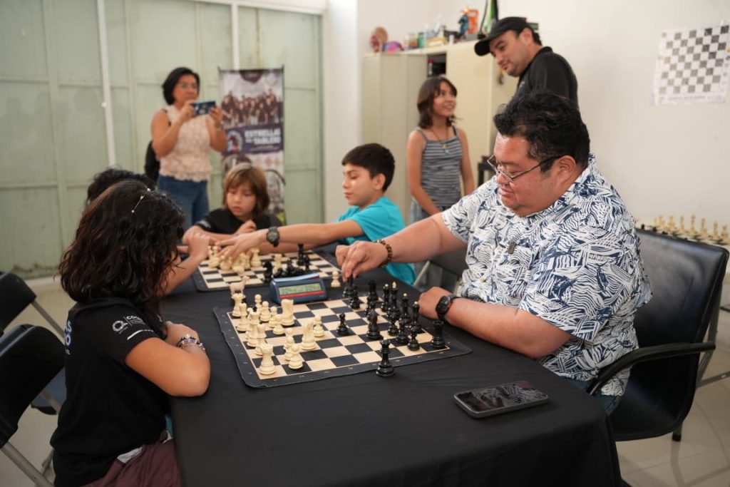 Durante la visita, el mandatario municipal disputó una partida amistosa con Arely Martín, medallista de bronce en la fase estatal de los Juegos CONADE en la categoría sub-12, reconociendo su talento, disciplina y constancia, así como el esfuerzo que realizan las y los integrantes del club de ajedrez. La convivencia se desarrolló en un ambiente relajado, de aprendizaje y motivación, en el que el mandatario disfrutó de una tarde cercana con las y los participantes del grupo.