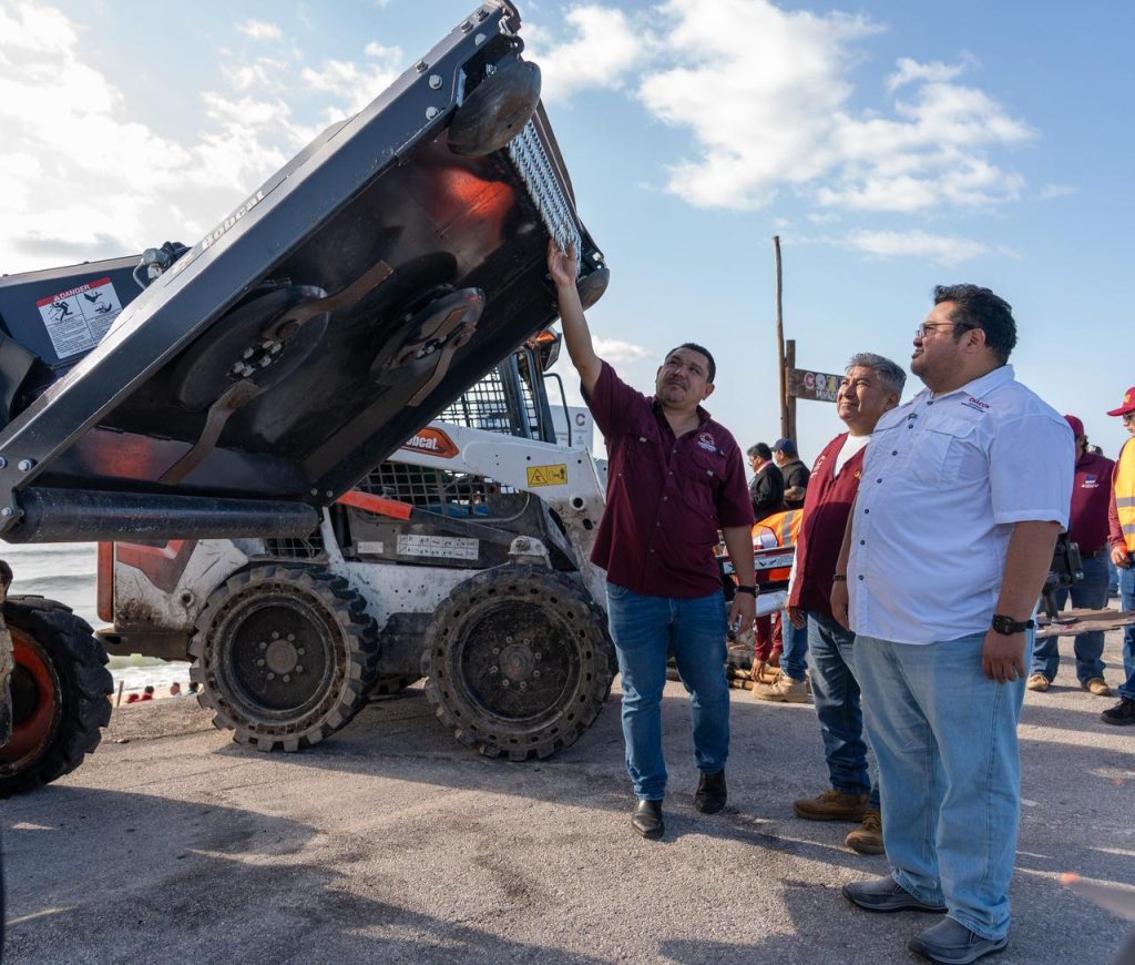 Entre el equipo entregado se encuentran accesorios para el Bobcat, una cortadora de troncos, una desmalezadora y un camión de volteo de 35 toneladas, herramientas que permitirán fortalecer las tareas de limpieza, recolección y mantenimiento de las áreas públicas y costeras.