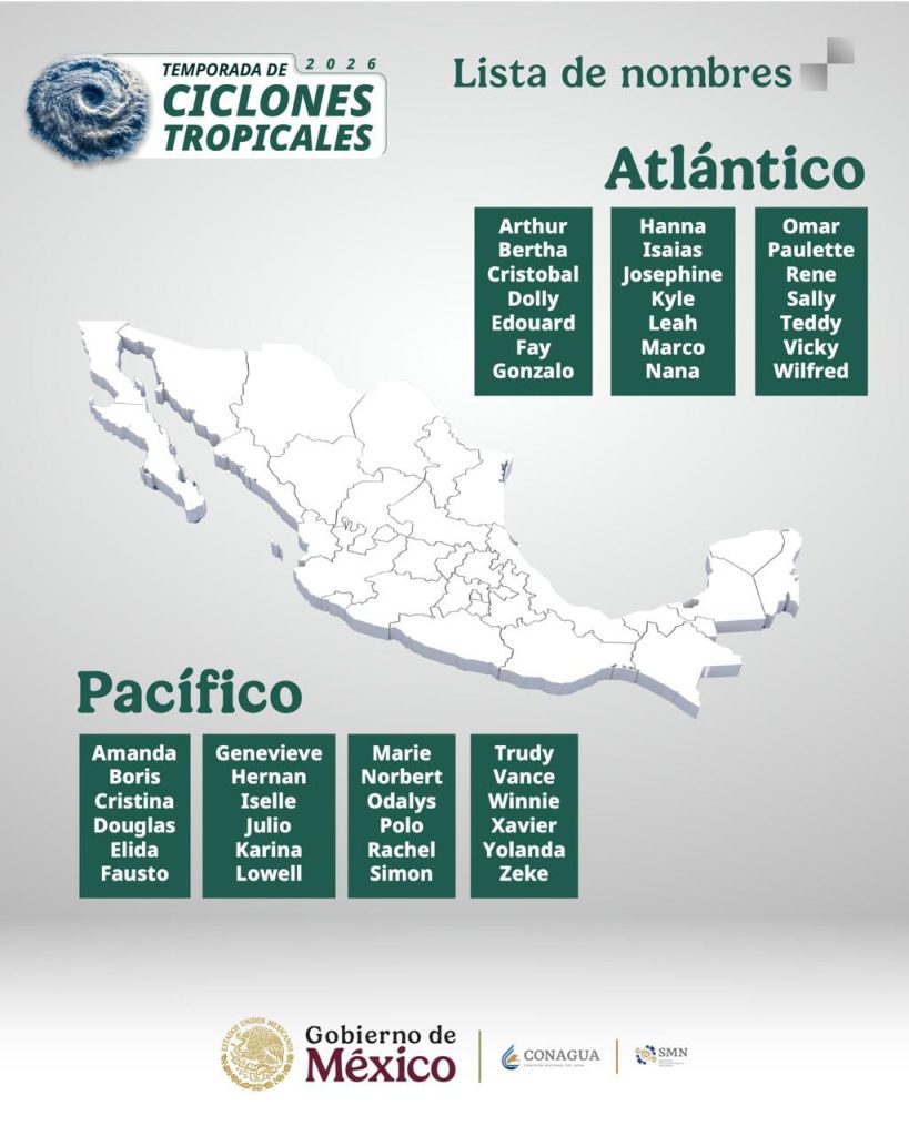 Cancún, 23 de abril de 2026.- La Comisión Nacional del Agua (Conagua) dio a conocer el pronóstico oficial de la temporada de ciclones tropicales 2026 en el Atlántico, en la que se prevé la formación de entre 11 y 15 sistemas, informó la gobernadora Mara Lezama Espinosa.