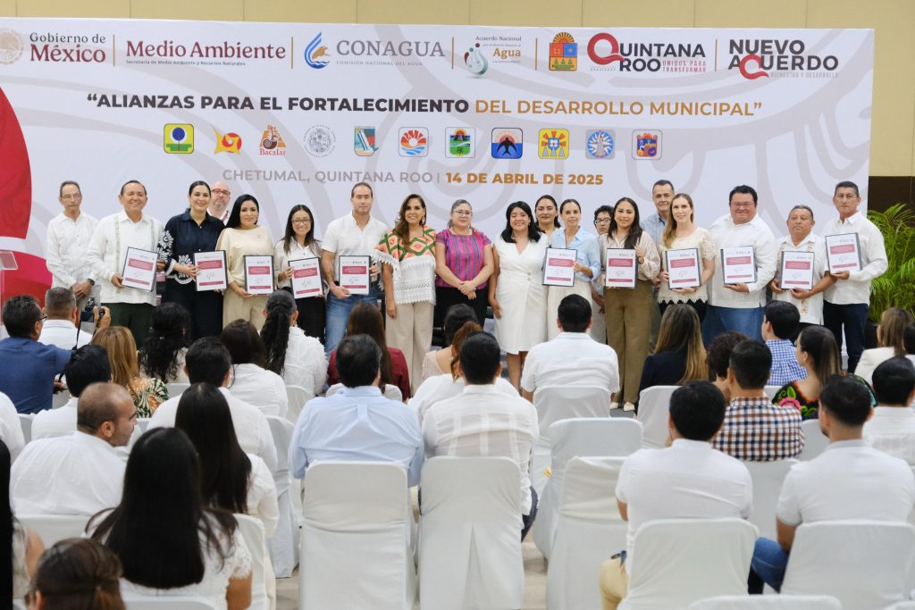 Cozumel, 14 de abril del 2025. – El presidente municipal, José Luis Chacón Méndez, participó junto a la Gobernadora del Estado, Mara Lezama, así como las y los presidentes municipales de Quintana Roo, en la alianza para el fortalecimiento del desarrollo municipal y la firma de los Planes Municipales de Desarrollo 2024-2027.