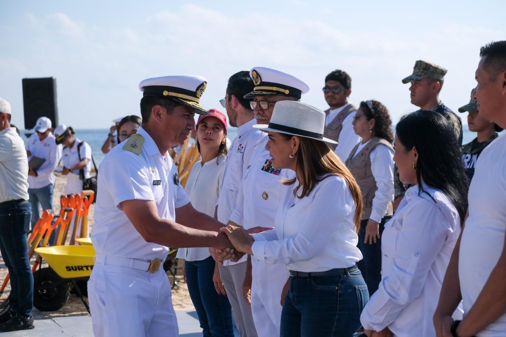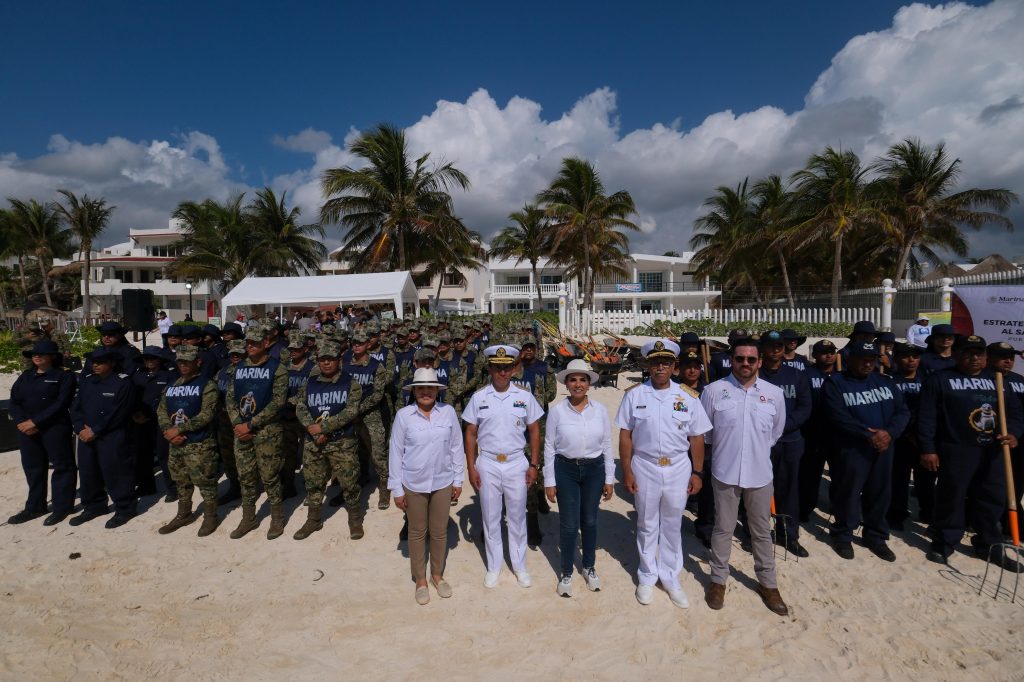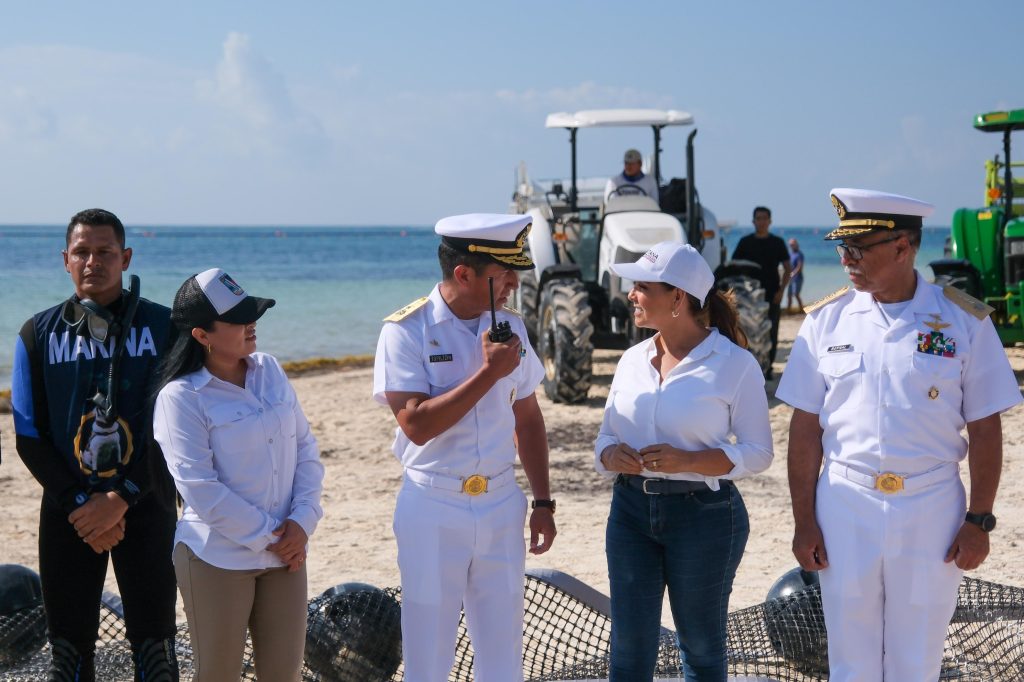 En la playa Ojo de Agua, la gobernadora Mara Lezama, acompañada de la presidenta municipal Blanca Merari Tziu, así como del Coordinador de la Estrategia de Atención al Sargazo de la Secretaría de Marina, contralmirante Topiltzin Tlacaletl Flores Jaramillo, aseguró que ya estamos preparados para el inicio de la temporada de sargazo 2025.