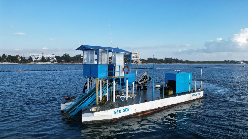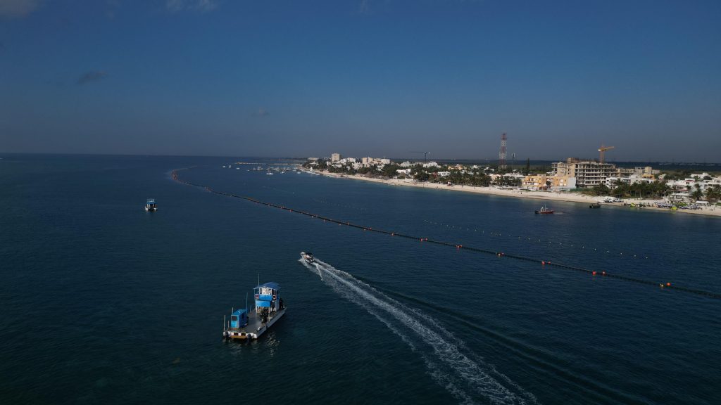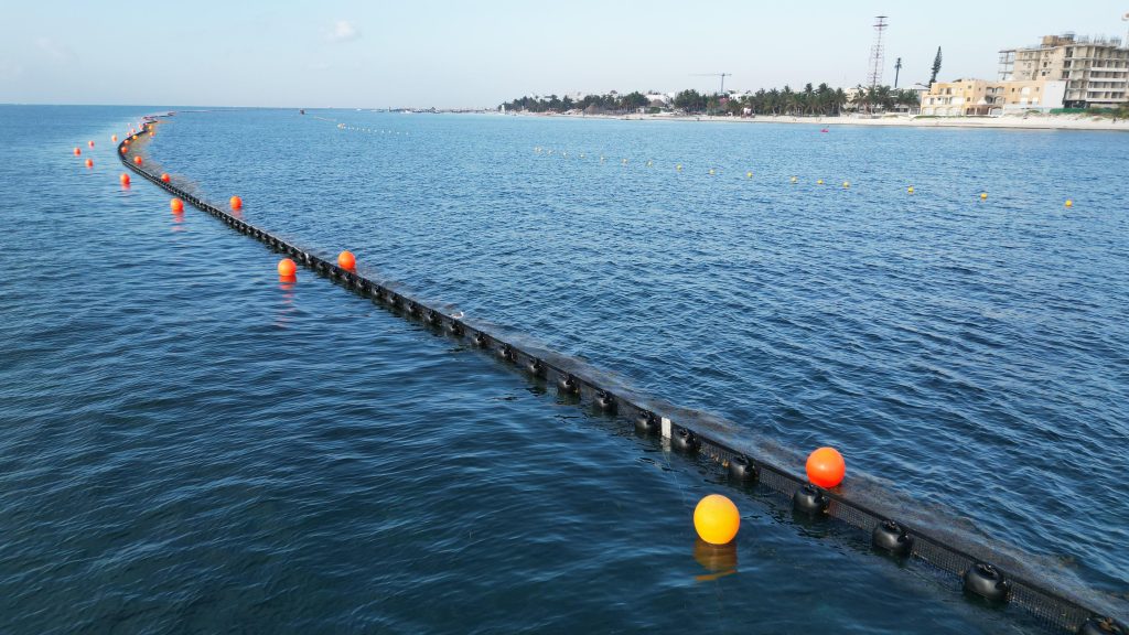 En la fase de contención se instalan barreras en sitios estratégicos para contener el alga y redireccionarlo hacia los puntos de recolección. Ya se han instalado 9 mil 500 metros de barrera.